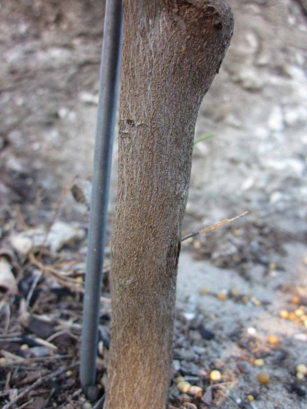 Crown compact or dense, not weeping. First-year twig surface glabrous; second- or third-year twig surface striate; thorns straight; prickles absent or not persistent. Petiole glabrous, length short, wings absent. Leaflets one, margin bluntly toothed, shade leaflet blades flat or weakly conduplicate, sun leaflet blades weakly conduplicate. Leaflets not scented when crushed. Fruit as broad as long or longer than broad; medium green (4), light green with some break to yellow (5), or green-yellow (6); rind texture medium rough (6-7); firmness leathery; navel absent; flesh green/greenish.