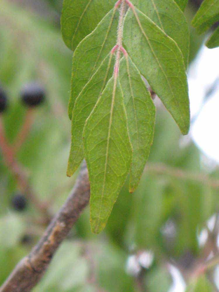 "Kurz (1877, vol. 1, p. 190) described this species as follows: "An evergreen tree, 15-20 ft. [4.6-6.1 m] high, trunk 4-10 ft. [1.2-3 m] high, 1/2-1 1/2 ft. [15-46 cm] in circum., glabrous or slightly puberulous; leaves unpaired-pinnate, the rachis usually more or less pubescent, rarely quite glabrous; leaflets in 5-10 pairs with an odd one, on a short puberulous petiolule, oblong-lanceolate or ovate, almost falcate, oblique at base, about 1-1 1/2 in. [2.5-3.8 cm] long, acuminate, more or less serrulate, membranous, glabrous, except on the midrib, which is often puberulous; flowers small, white, in terminal corymbs; petals oblong-lanceolate, acute, about 2-3 lin. [4-6 mm] long; stamens 10, alternately shorter; ovary 2-celled, the style short and thick; berries oblong, somewhat acute, the size of a small pea, l-2-seeded, bluish-black."