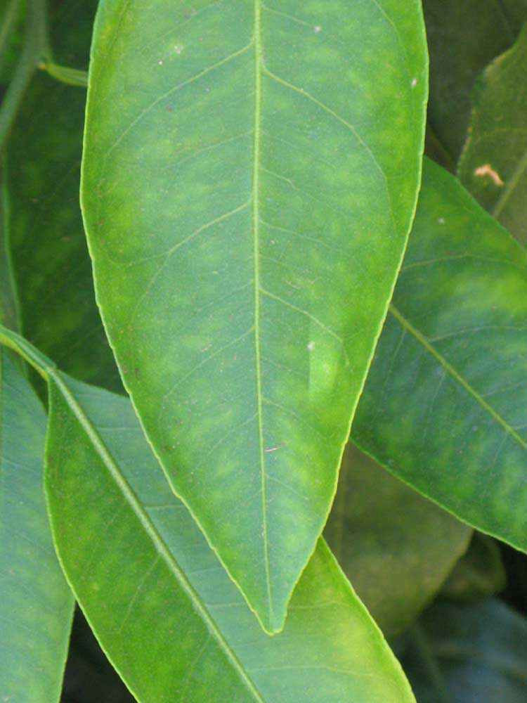 Crown compact or dense, not weeping. First-year twig surface glabrous; second- or third-year twig surface striate; thorns absent or not persistent; prickles absent or not persistent. Petiole glabrous, length short; wings narrow, adjoining the blade. Leaflets one, margin bluntly toothed or serrate/serrulate, shade leaflet blades flat or weakly conduplicate, sun leaflet blades weakly or strongly conduplicate. Scent of crushed leaflets mandarin-like. Fruit as broad as long or longer than broad; rind yellow (7-10), yellow-orange (11), orange (12), or red-orange (13); rind texture slightly rough (4-5); firmness leathery; navel absent; flesh orange; taste acidic-sweet.