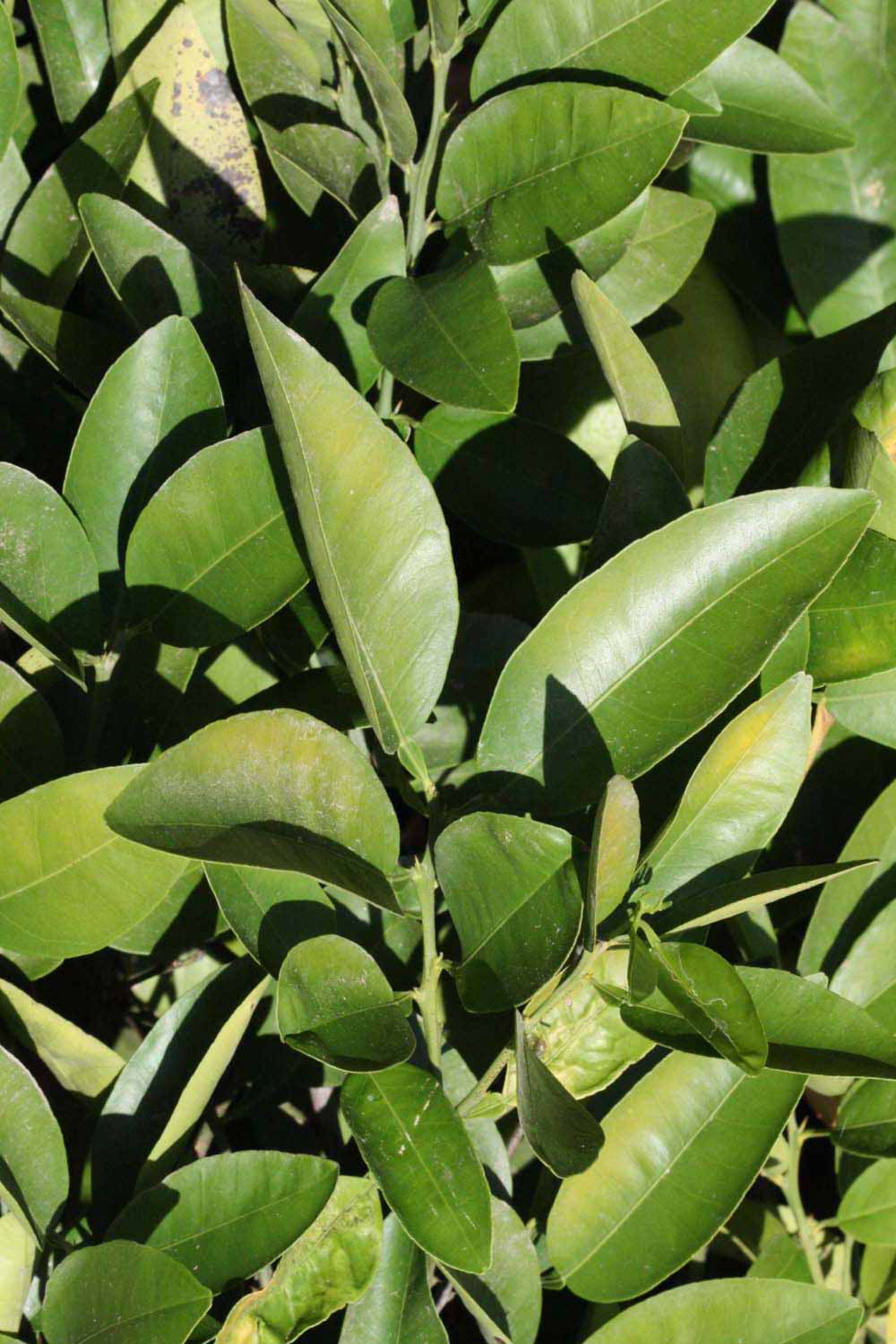 Crown compact or dense, not weeping. First-year twig surface glabrous; second- or third-year twig surface striate; thorns absent or not persistent; prickles absent or not persistent. Petiole glabrous, length short; wings medium, adjoining the blade. Leaflets one, margin entire (by misinterpretation) or bluntly toothed, shade leaflet blades flat or weakly conduplicate, sun leaflet blades flat or weakly conduplicate. Scent of crushed leaflets sweetly orange-like. Fruit as broad as long or longer than broad; rind green-yellow (6), yellow (7-10), yellow-orange (11), or orange (12); rind texture smooth (1-3) or slightly rough (4-5); firmness leathery; navel absent; flesh yellow; taste grapefruit-like.