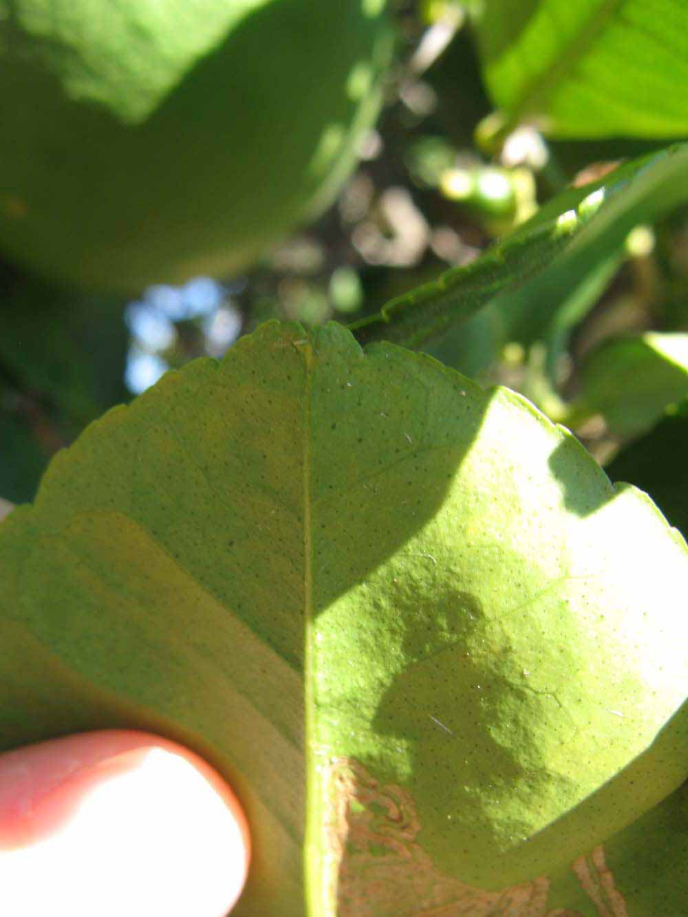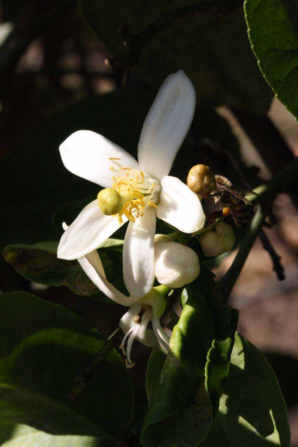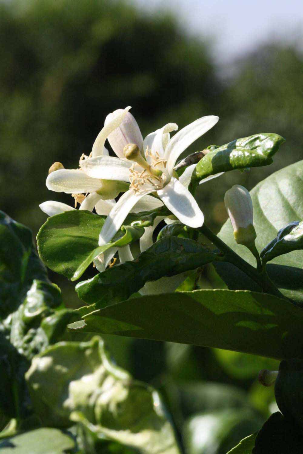 Tree small, round-topped, and productive; branches medium-thick and theory; leaves large elliptical to oblong and citron-like. Flowers and new growth purple-tinged. Everflowering. Tree sensitive to cold."
