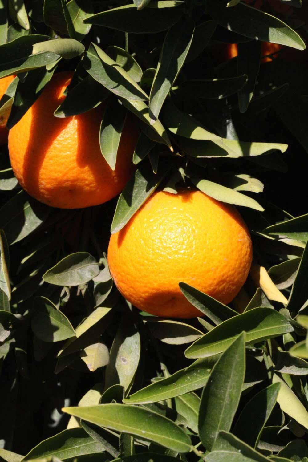 Crown compact or dense, not weeping. First-year twig surface glabrous; second- or third-year twig surface striate; thorns absent or not persistent; prickles absent or not persistent. Petiole glabrous, length medium; wings absent, if present, narrow, adjoining the blade. Leaflets one, margin bluntly toothed, shade leaflet blades weakly conduplicate, sun leaflet blades weakly or strongly conduplicate. Scent of crushed leaflets mandarin-like. Fruit broader than long; rind yellow (7-10), yellow-orange (11), orange (12), or red-orange (13); rind texture slightly rough (4-5); firmness leathery; navel absent; flesh orange; taste acidic-sweet.