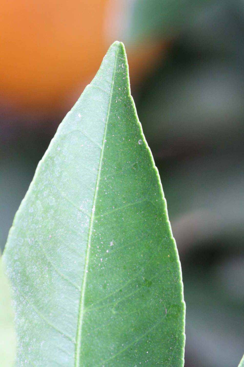 Crown compact or dense, not weeping. First-year twig surface glabrous; second- or third-year twig surface striate; thorns absent or not persistent; prickles absent or not persistent. Petiole glabrous, length short or medium; wings absent, if present, narrow, adjoining the blade. Leaflets one, margin entire (by misinterpretation) or bluntly toothed, shade leaflet blades flat or weakly conduplicate, sun leaflet blades weakly conduplicate. Scent of crushed leaflets mandarin-like. Fruit as broad as long or longer than broad; rind yellow-orange (11), orange (12), or red-orange (13); rind texture slightly rough (4-5) or medium rough (6-7); firmness leathery; navel absent; flesh orange; taste acidic-sweet.