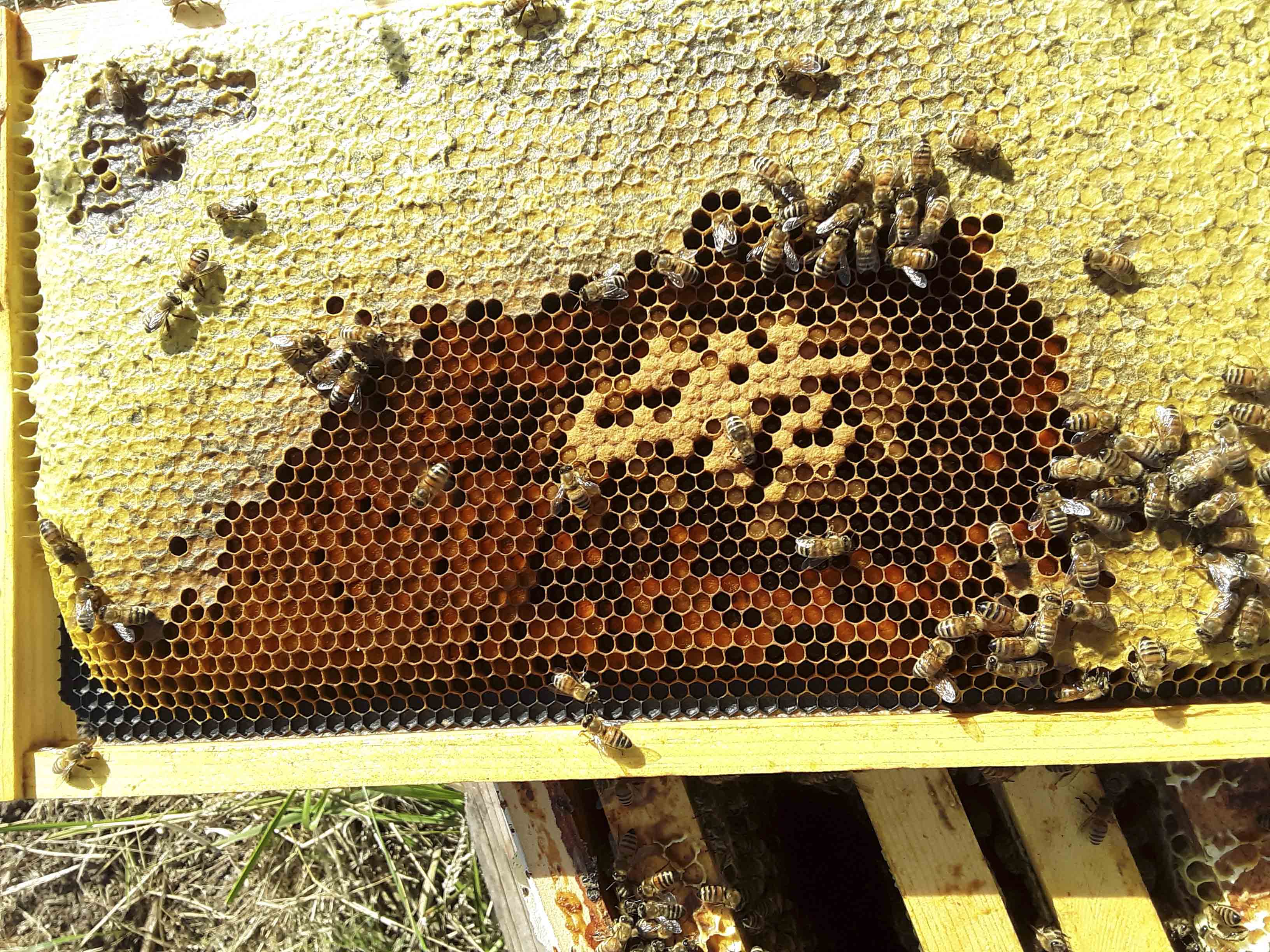 Remedy for pollen or honey bound, if either is believed to be the situation. is to move pollen- or honey-filled frames to the edge of the brood box(es) or remove such frames completely from the hive. The frames can be given to weaker colonies in need of pollen or honey or stored briefly to be given to colonies later in the season when they might better use these stored resources.