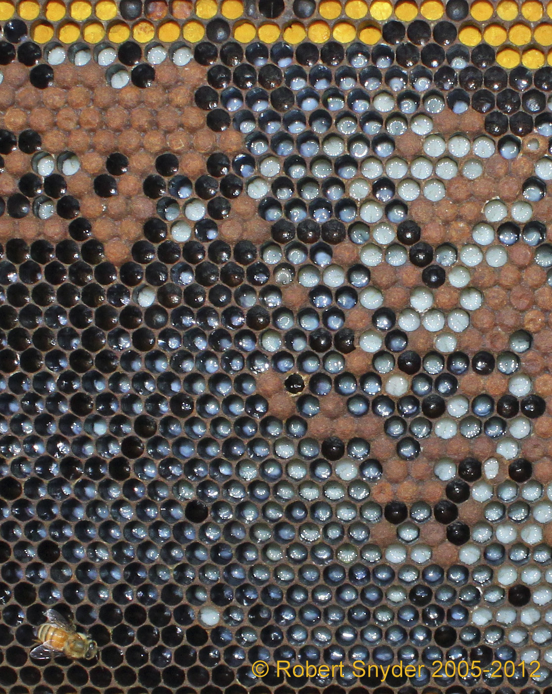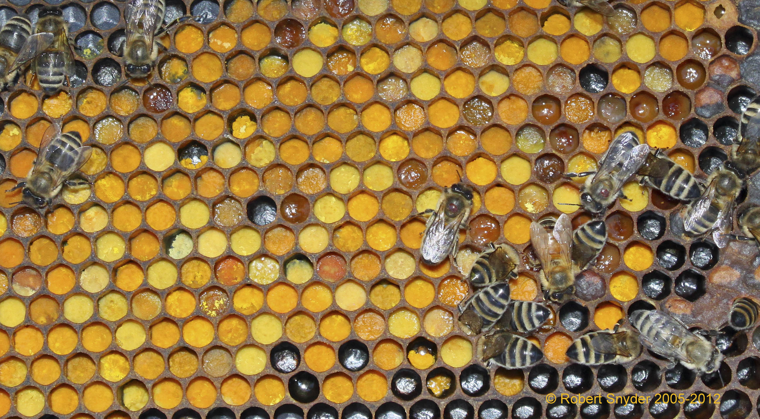 so it is within easy reach of the nurse bees. It will have a large range of colors and nutritive value depending upon floral source.