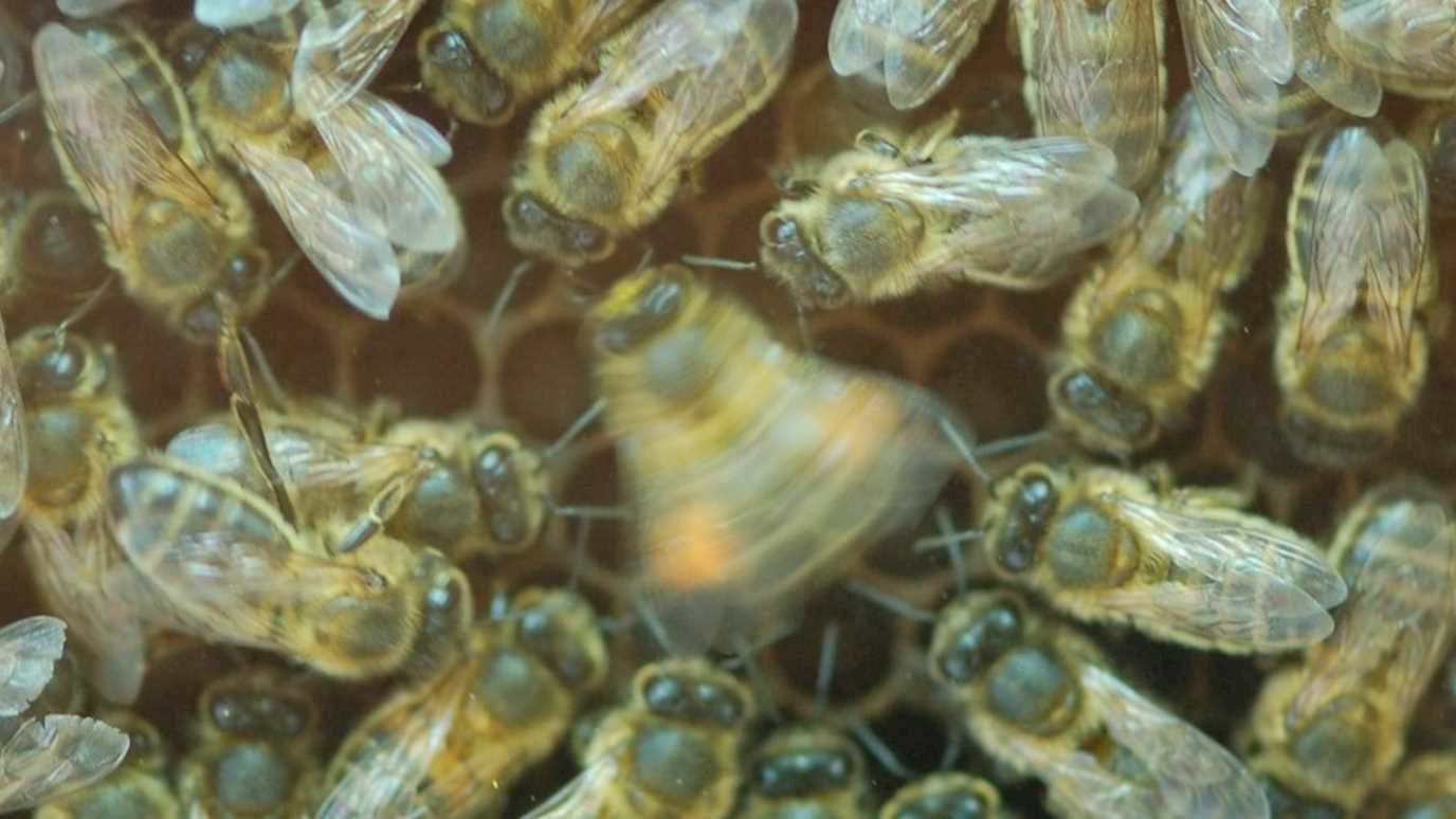Worker bees, especially when in the lowest box, repeating an exaggerated movement pattern of circling that includes rapid movement of the abdomenabdomen: