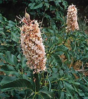 Rhododendron, from the heath family (Ericaceae), is poisonous to bees and humans. It contains an andromedotoxin. Mountain laurel (Kalmia latifolia) also contains an andromedotoxin that can poison humans. California buckeye (Aesculus californica) annually causes losses of honey bee colonies throughout its range on the western slopes of the Sierra Nevada Mountains in California. Yellow jessamine (Gelsemium sempervirens) can poison humans who might eat honey made from this plant. Bees foraging on the flowers of yellow jessamine appear intoxicated, become paralyzed, and die. Yellow jessamine has been reported to cause periodic poisoning of bees from Florida to Texas.