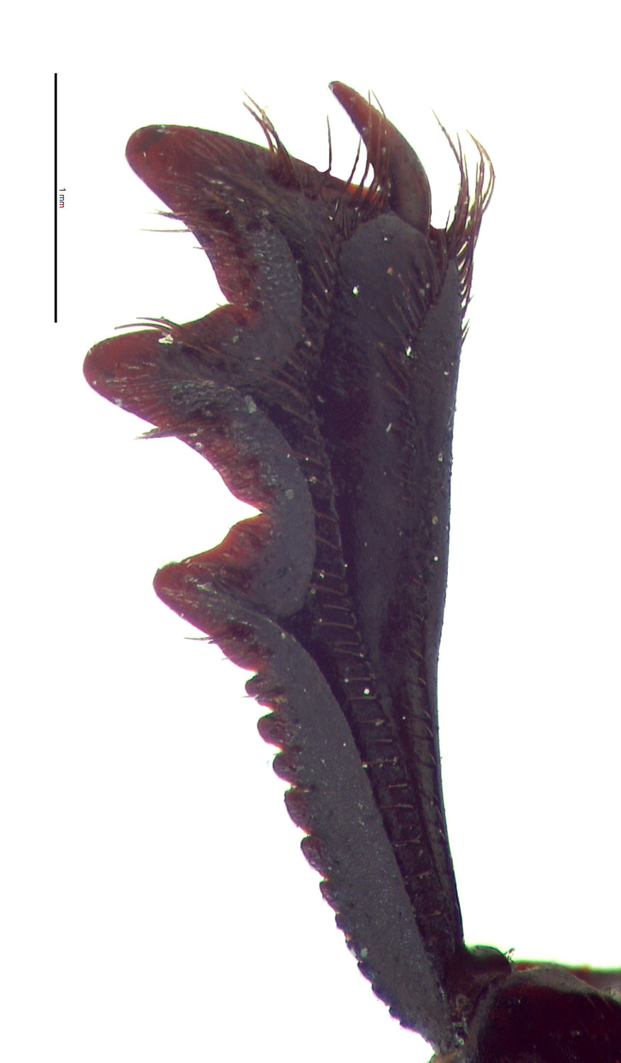 projecting, angular process on each side. Legs each with a single long, terminal setaseta:
