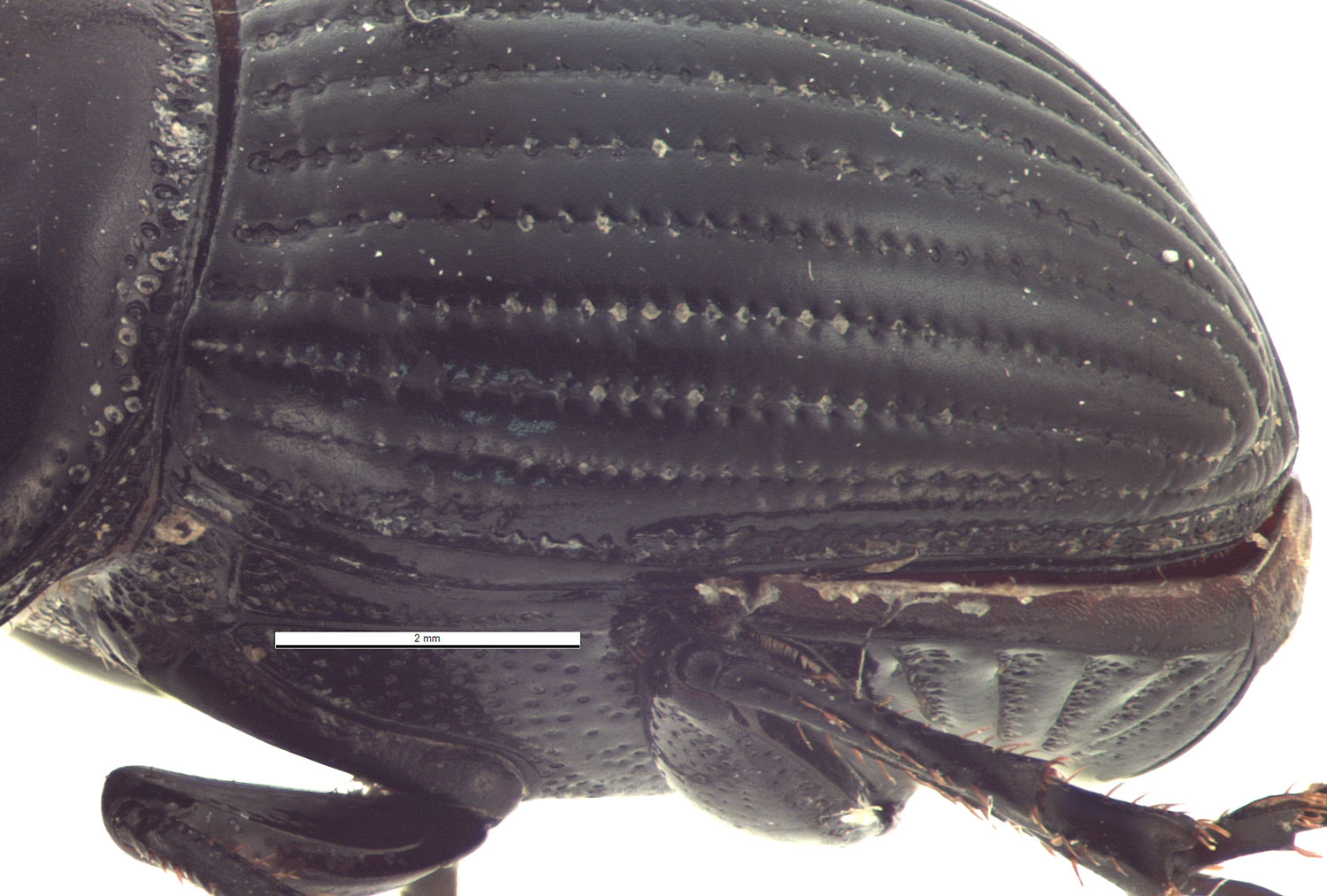 This scarab is extremely similar to the closely related Copris incertus. These species are separated by examination of the elytraelytra: