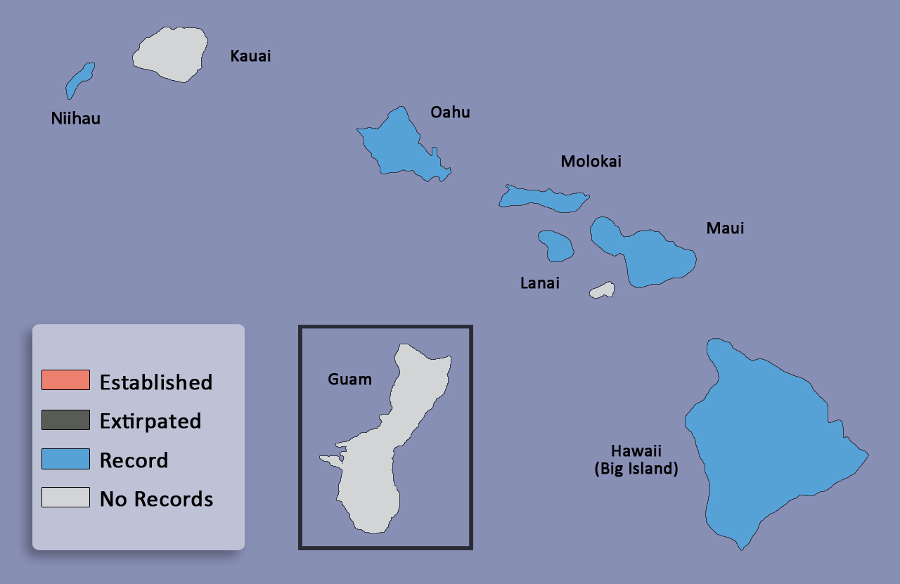 Anonymous. 1923. Report of the entomologist. Hawaii Board of Commissioners of Agriculture and Forestry. Division of Forestry. Honolulu, HI: Hawaiian Gazette Company.). Despite these efforts the species failed to establish in Hawaii (Nishida, 2002Nishida, 2002:
