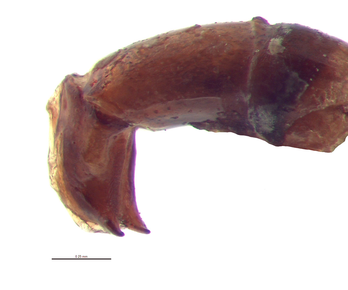 of major male with slight hump-like process; process reduced in minor male; female with rounded peg-like process. Front tibiatibia: