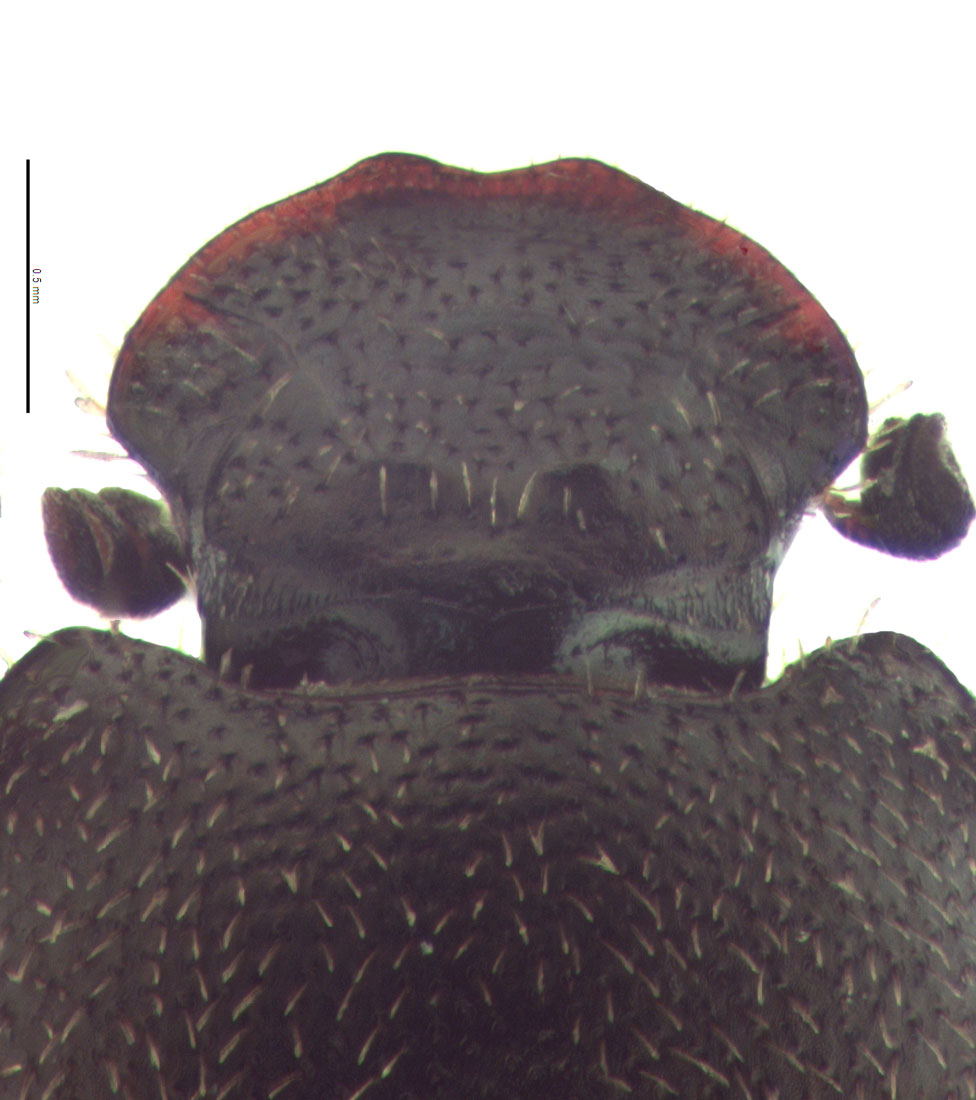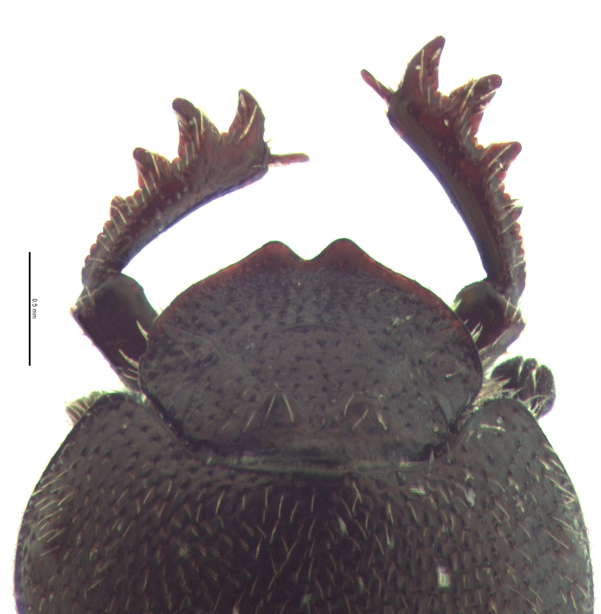 This tiny scarab is extremely similar to the closely related Onthophagus oklahomensis and superficially similar to small specimens of Leconte's dung beetle (Ateuchus lecontei). These three species are separated by examining the clypealclypeal:
