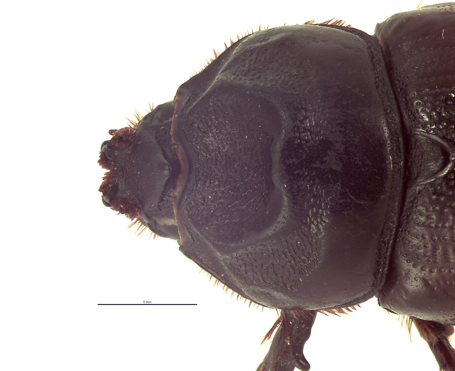 of both sexes without horns, but with broad, sculpted depression. Pygidiumpygidium: