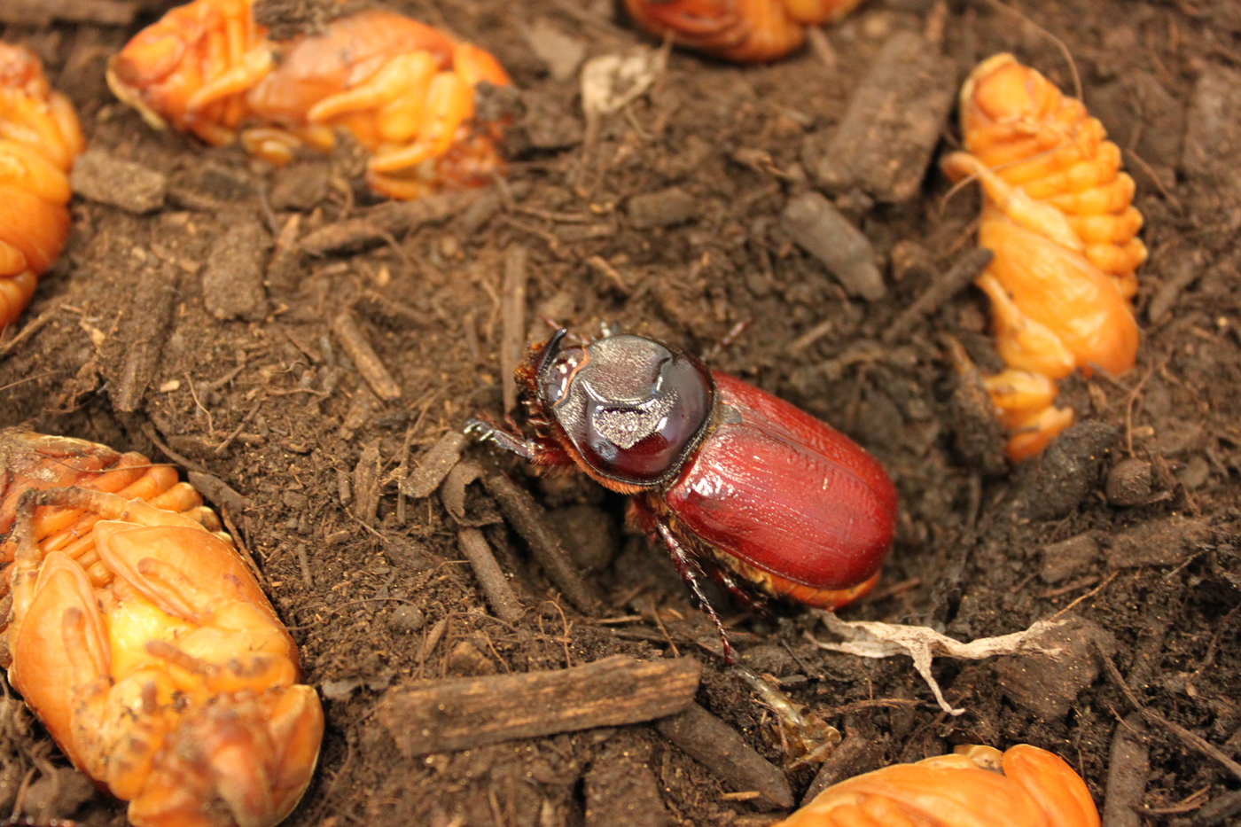 Bedford G. 2015. Oryctes rhinoceros (coconut rhinoceros beetle). Invasive Species Compendium. Wallingford, UK, CABI International. Available from http://www.cabi.org/isc/datasheet/37974 (accessed 2015).). It has been reported that larvaelarvae: