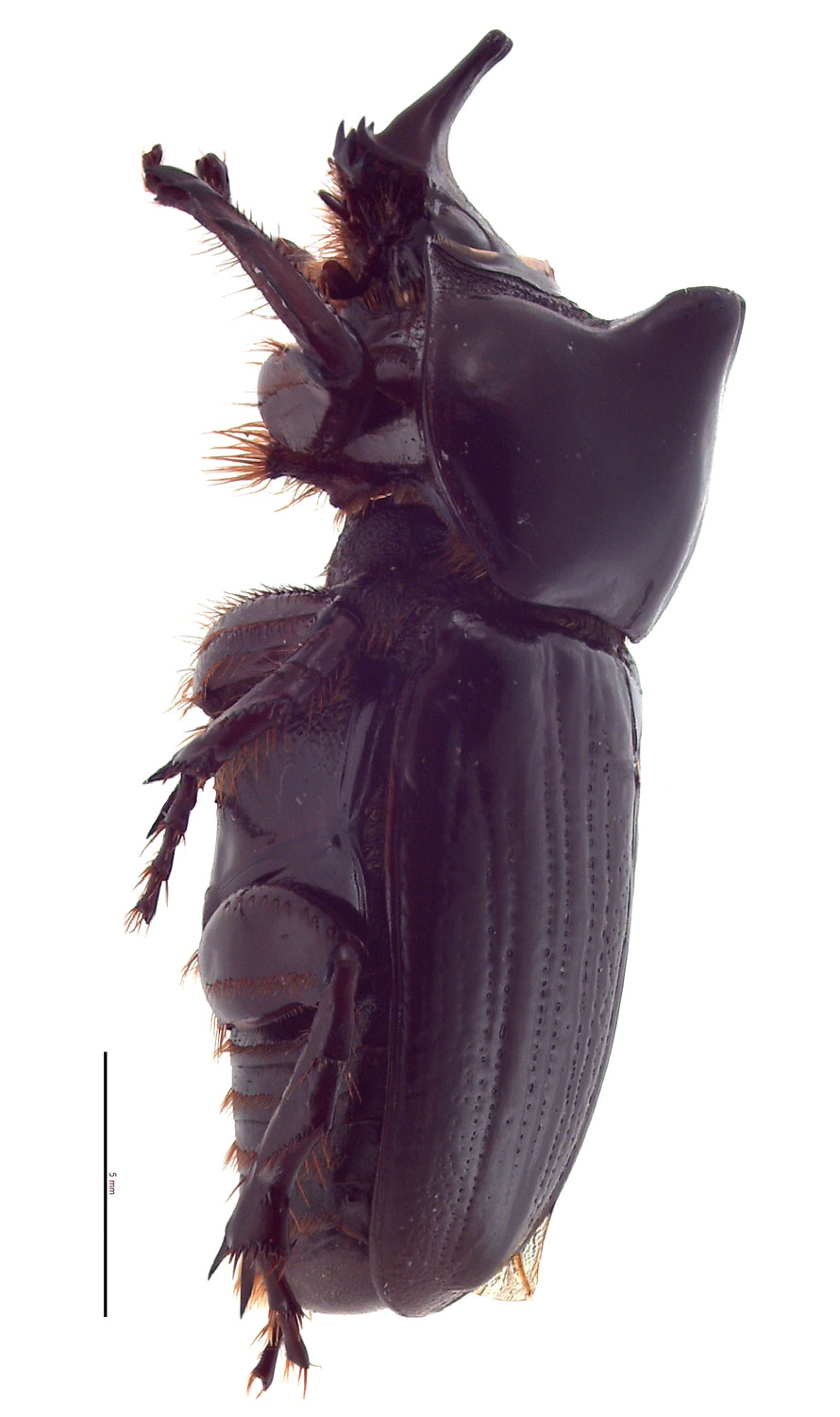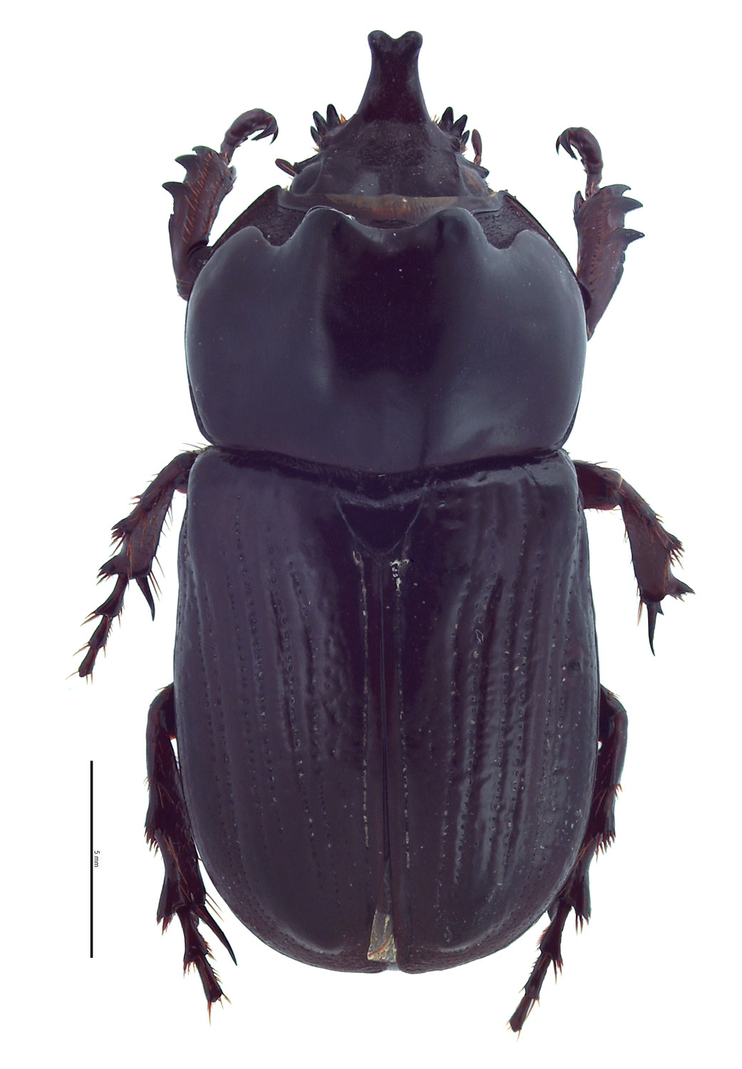 Papuana is a genus of medium-sized scarab beetles that are armed with horns or tubercles. All species are shiny black and have an elongated, oval body shape. Total body length ranges between 15.0–30.0 mm (0.59–1.18 in). The apexapex: