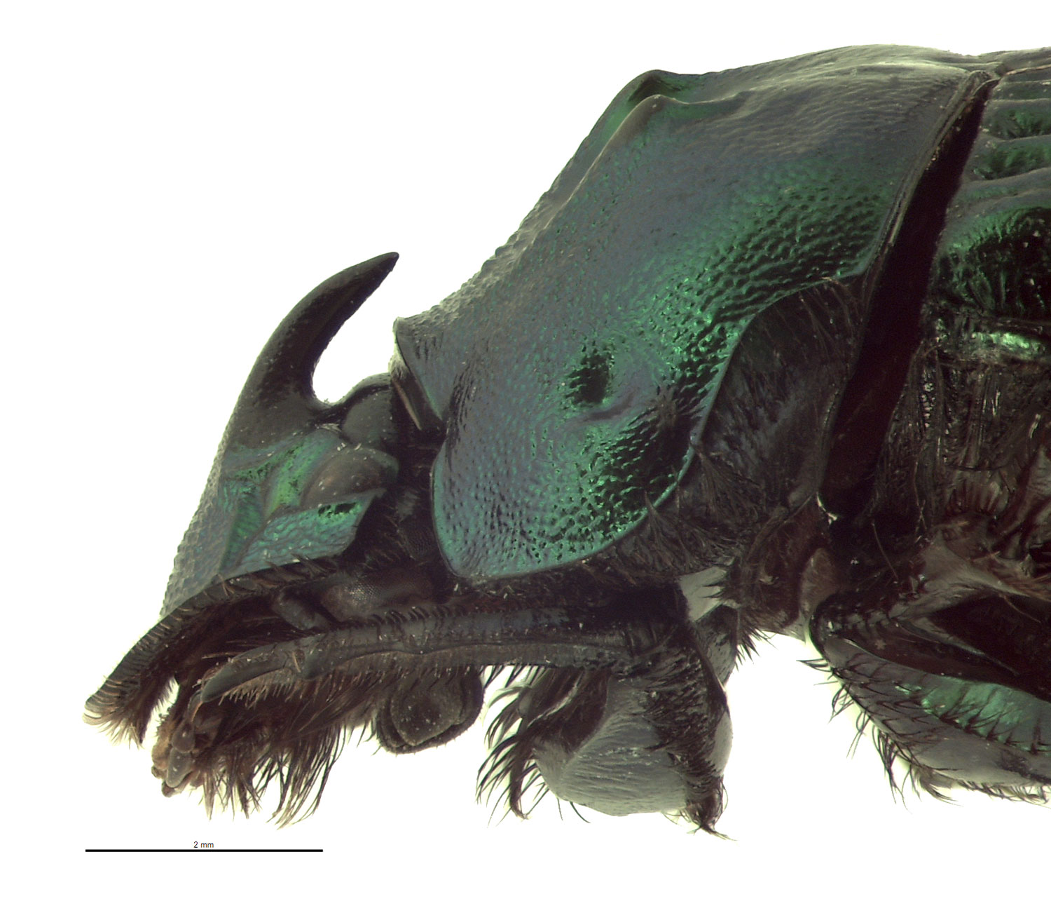 of major male with 3 elevated ridges; ridges reduced in minor males, absent in females. Pronotal surface at lateral margins granulategranulate: