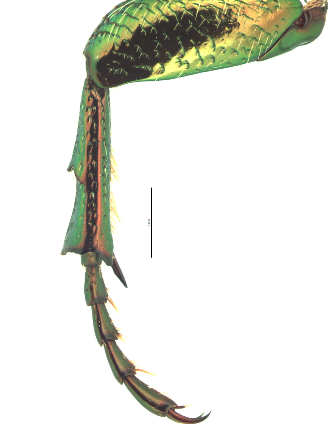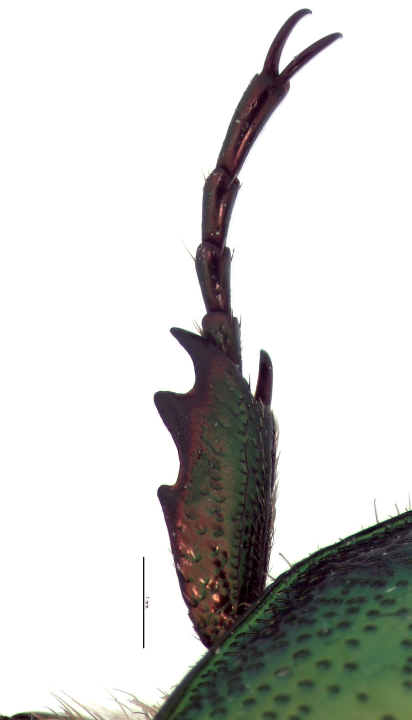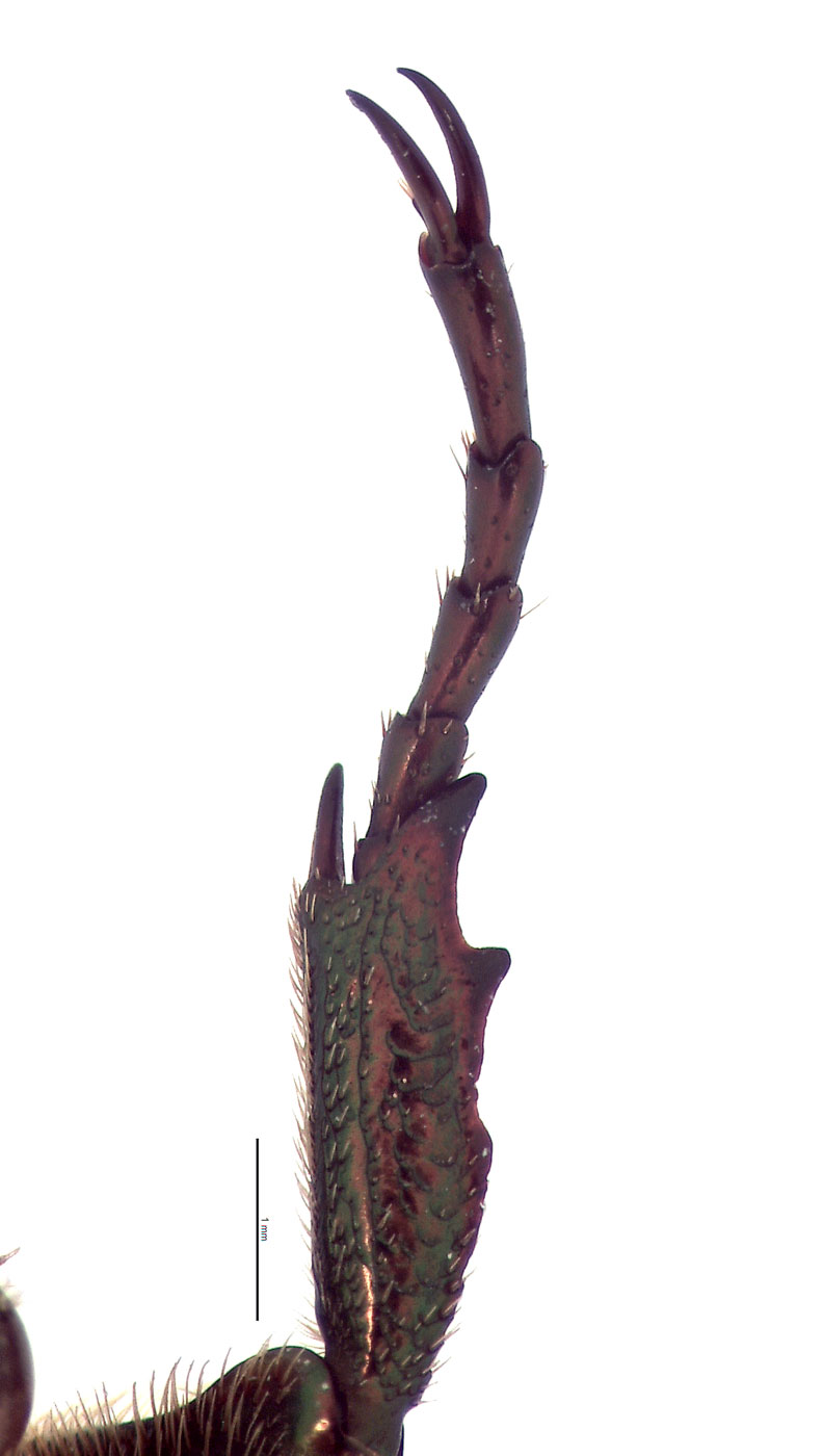 weak); female with 3 external teeth. Hind tibiatibia:
