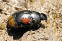 may still fool you. Picnic beetles (or sap beetles; Nitidulidae) resemble scarabs and may be found in ripe fruit along with Asian flower beetles (Protaetia species). Some darkling beetles (such as Bolitotherus species; Tenebrionidae) have a similar appearance to scarabs that you might encounter in rotting wood or on the soil surface. Beneficial beetles found in dung include scarabaeoid dung beetles as well as water scavenger beetles (such as Sphaeridium species; Hydrophilidae) and clown beetles (or hister beetles such as Hister species; Histeridae). You can use the gallery to browse images to make certain that your specimen is a scarab beetle. Useful resources for scarab beetle identification (families, subfamilies, tribes, and genera) include the Generic Guide to New World Scarab Beetles and BugGuide.